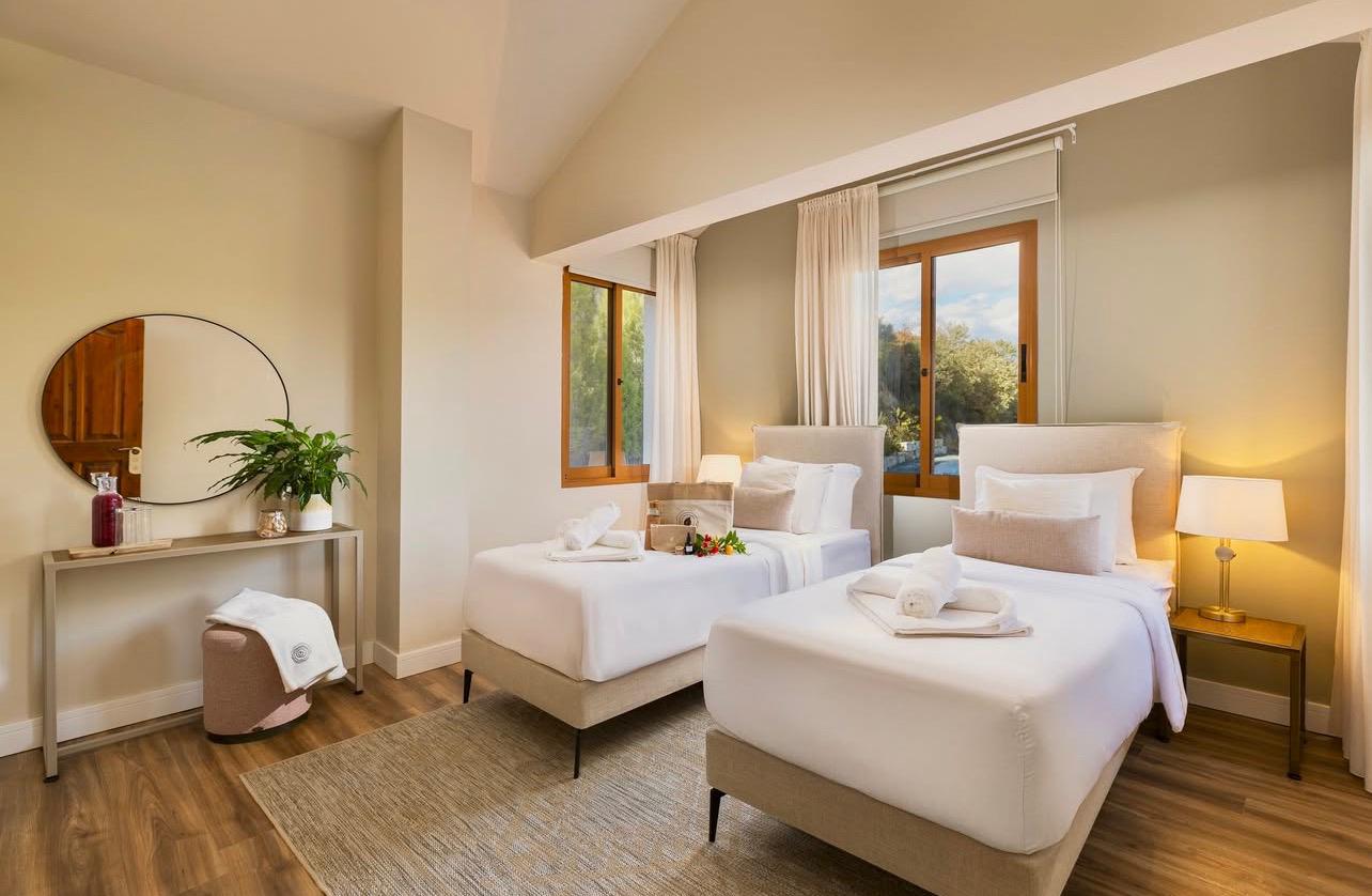 הוילה בחוות הבריאות: חדרים מעוצבים ומרווחים המעניקים תחושת קהילה וחיבור, במרחק נגיעה מחללי הסדנאות והספא.